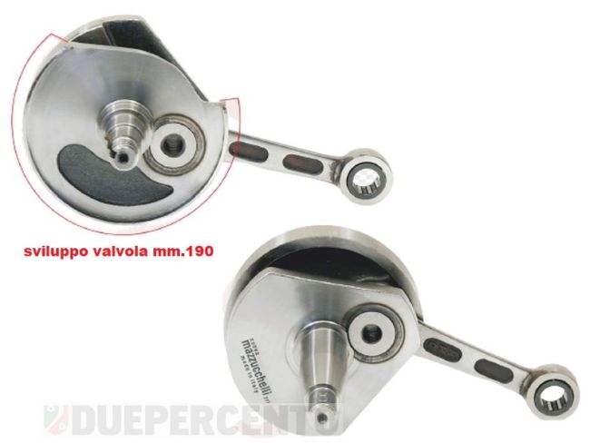 Mazzucchelli è un marchio italiano leader nella produzione di alberi motore e bielle. L'intero processo di produzione, mantiene costante la precisione e il controllo della qualità ad ogni livello, sia in termini di prodotto finito, sia in termini di affidabilità del servizio offerto. MAZZUCCHELLI produce alberi motore con diverse tipologie, possiamo trovare gli alberi motore simili agli originali oppure alberi motore con carattere sportivo, che si dividono in alberi motore anticipati e alberi motore spalle piene. DUEPERCENTO commercia i prodotti MAZZUCCHELLI fin da subito, anche perché negli anni 2000 non si trovavano sul mercato altri marchi di alberi motore, dalla nostra esperienza possiamo solo constatare che il prodotto è buono ed affidabile per cilindri sia originali e sportivi che non siano troppo potenti di cavalleria.