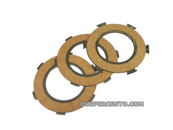 Prezzo Speciale 17,67 € Prezzo pieno 18,60 € - Codice articolo: 4302023Dischi frizione FERODO 2.0 per frizioni 6 molle, 3 dischi sughero, 2 infradischi per Vespa PX125-150/ Lusso/ MY/ GTR/ TS/ Sprint Veloce