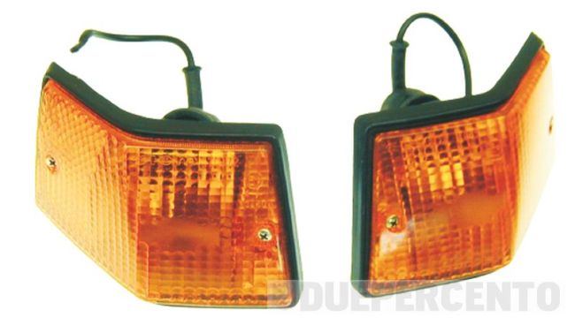 Coppia frecce posteriori SIEM, vetro arancione, cornice nera per Vespa PX125-200/ P200E/ MY/ T5
