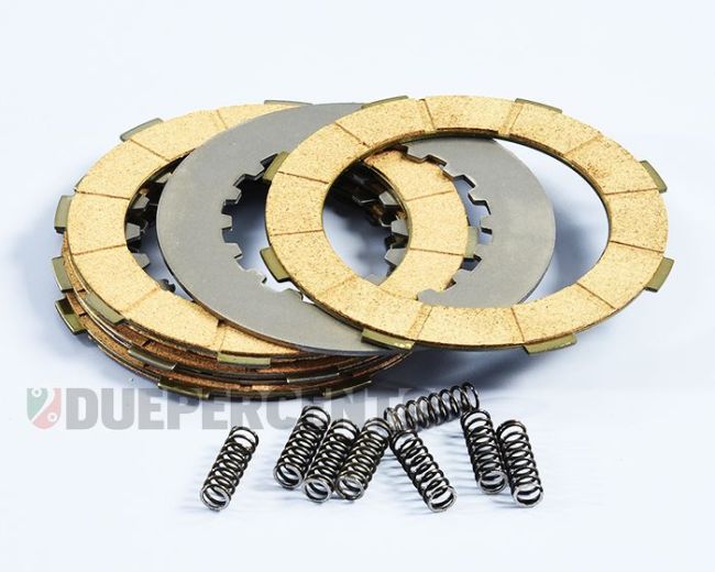 Dischi frizione POLINI per frizione 8 molle, 4 dischi sughero, 4 infradischi, 8 molle rinforzate per Vespa PX125-200/ GTR/ TS P200E/ Cosa200/ Rally180-200/ T5