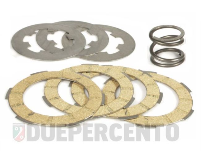 Per il modello Vespa 50-125 Primavera ET3 small frame, è stata realizzata una frizione racing a 4 dischi con molla rinforzata.