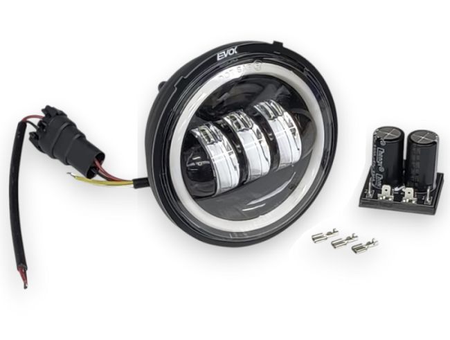 Fanale anteriore completo Ø 105 mm led, EVOK "Angel Eyes" per Vespa 50 N/ S/ R /L V5A1