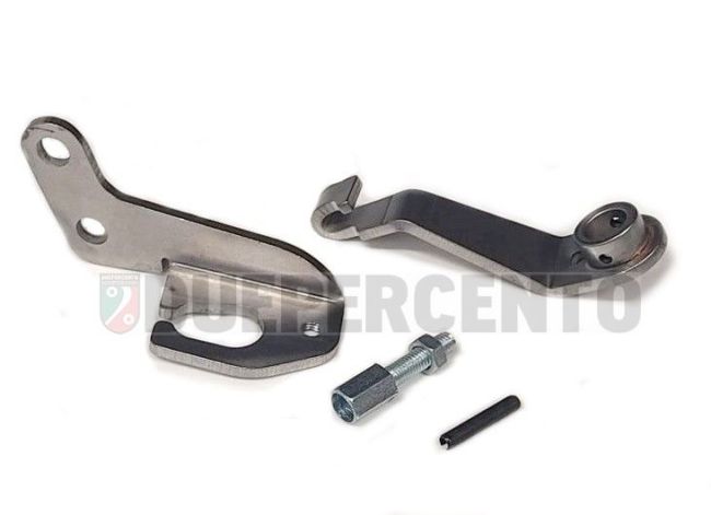 Kit di conversione da leva corta a leva lunga carterino frizione. Kit staffa passacavi + leva lunga carterino frizione per Vespa smallframe