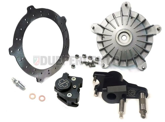 Kit freno a disco anteriore CRIMAZ P&P 2.0 RDP, pinza nera, supporto pinza nero per Vespa 50/ 50 special/ ET3/ Primavera/ PK
