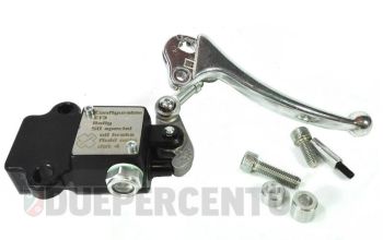 Nuovo kit freno a disco P&P 2.0 con mozzo ricavato dal pieno per Vespa Smallframe. Nato per essere montato sulle Vespa Smallframe senza sostituire forcella, parafango e tamburo. Si monta sulla forcella originale ed è compatibile con tutti i modelli Et3 e derivati a biscotto corto. Disco 200mm con fissaggio perimetrale, pinza idraulica con monopistoncino diam. 30 mm realizzata dal pieno su supporto flottante. Per un corretto funzionamento, si consiglia di utilizzare la pompa da applicare al manubrio di nostra produzione. ARTICOLI AD USO AGONISTICO SPORTIVO