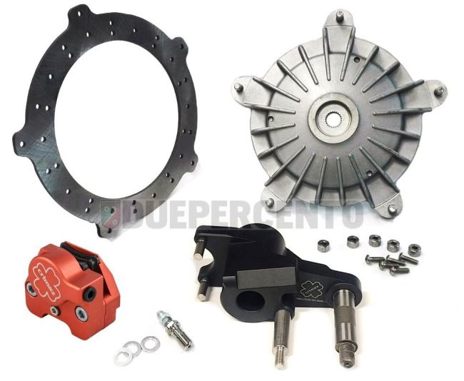 Kit freno a disco anteriore CRIMAZ P&P 2.0 RDP, pinza rossa, supporto pinza nero per Vespa 50/ 50 special/ ET3/ Primavera/ PK