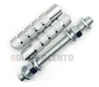 Pedane Piaggio Bravo 1 serie, alluminio ricavato dal pieno. Si applicano sfruttando attacchi poggiapiedi originali telaio. Pedane appoggio piede 120mm