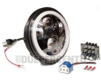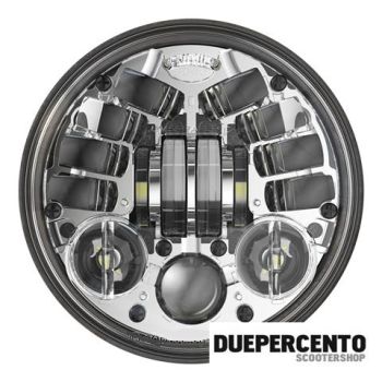 Prezzo Speciale 88,35 € Prezzo pieno 93,00 € - Codice articolo: 3401195Fanale anteriore a led HighPower MOTO NOSTRA con marchio omologazione E9 - per conversione Vespa PX125-200/ P200E