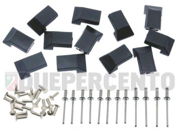 Prezzo Speciale 24,70 € Prezzo pieno 26,00 € - Codice articolo: 2701200Kit puntali listelli pedana in plastica con e senza foro per Vespa P125-150X/ PX125-200E/ Lusso 1°/ P150S/ P200E