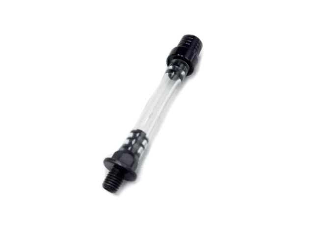 Sfiato olio VMC per carter Vespa Large e Small frame. Optional indispensabile per chi monta frizioni Vespa large frame come le Vmc 10 Molle e frizioni basate sul modello Piaggio 8 molle tipo "cosa2". Lo sfiato VMC prolungato verso l'alto permette di poter inserire nel carter motore più olio motore di quello previsto dai manuali Piaggio, evitando problemi di usure precoci dei componenti della frizione. Vite in acciaio con trattamento anticorrosione nero. Esagono per il fissaggio per chiavi da 10mm. Sistema di bloccaggio perdite in alluminio sulla sommità del tubo.